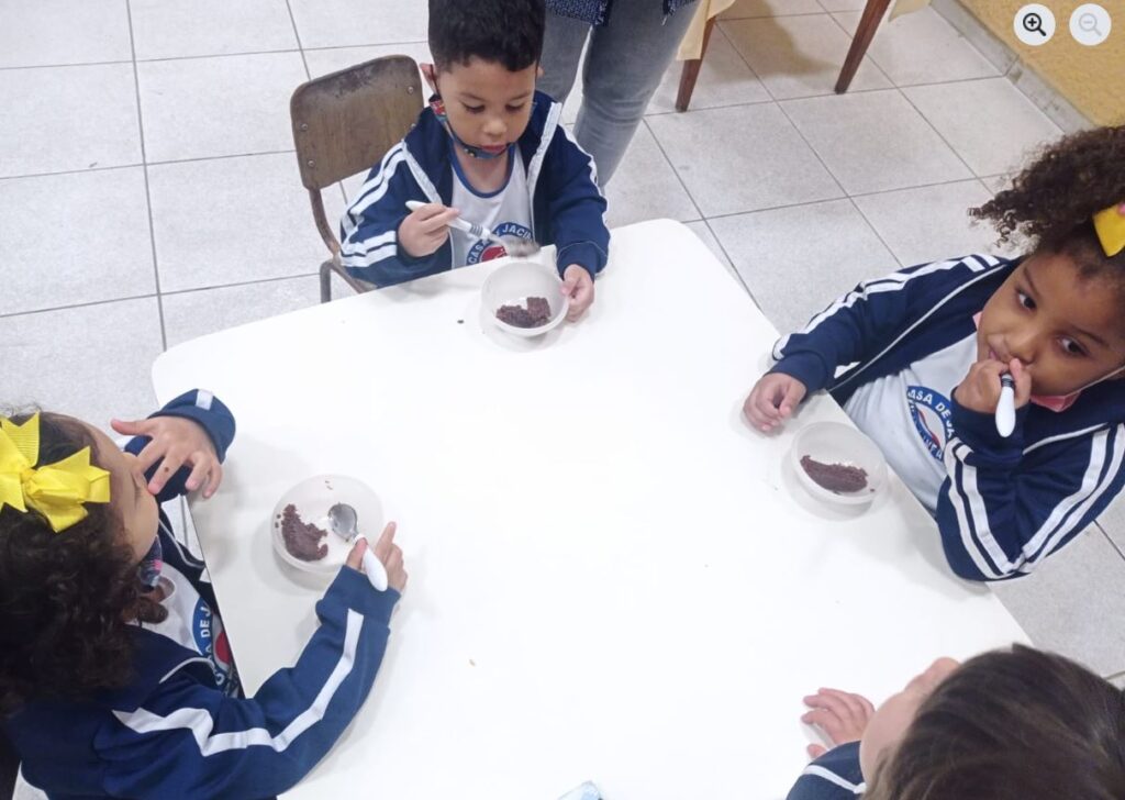 A alimentação é fornecida a todas as crianças participantes sendo: café da manhã e almoço / almoço – lanche – jantar.